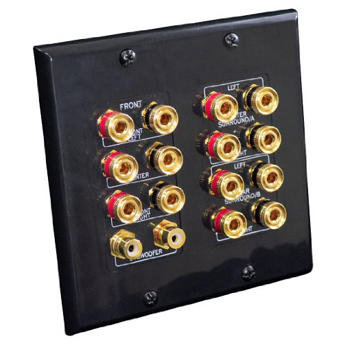 This black Pyle wall plate lets you keep your cables organized out of sight and behind the wall. Don’t just run your cables through a hole in the wall – give it a professional look with this Decora-style wall plate. Equipped with 7 stereo banana posts for speakers and 1 set of stereo RCA jacks for your subwoofer.